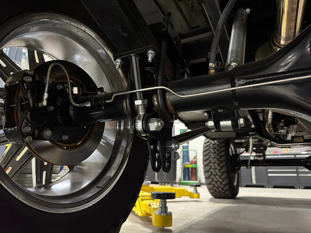 Note: Our traction bars are offered for lowered trucks with the axle flipped above the leaf spring, as well as stock height and lifted trucks up to a 2" block. Please choose according to your application.